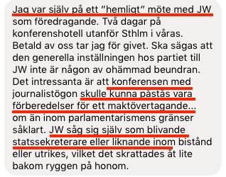 Nu framkommer uppgifter att socialdemokraten Johan Westerholm som står bakom bloggen Ledarsidorna själv ska ha förespråkat ett maktövertagande i Sverige.