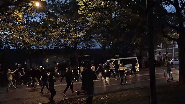 Migrants throwing rocks at the police #sweden #malmö #malmo #rosengård #rosengard pic.twitter.com/zjzU0xeQki