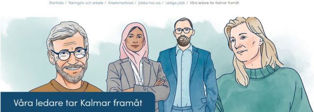 Kalmar kommun går ut i en kampanj för att locka fler kompetenta chefer till staden. Det gör man bland annat med en bild på en kvinna i muslimsk hijab som hävdas gestalta hur ledarskapet i kommunen ser ut. I själva verket finns det mycket få chefer med utländskt ursprung i kommunen.