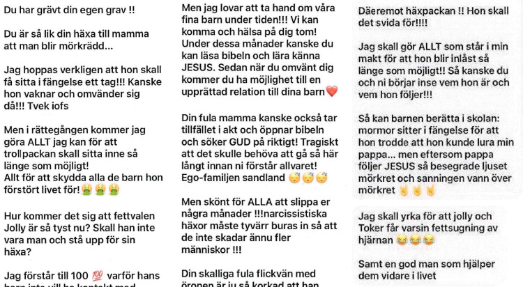 SMS:en blandar ilskna påhopp på ex-frun och hennes närstående, med religiösa utläggningar om Gud, Jesus och Bibeln. Den åtalade politikern nekar till brott.