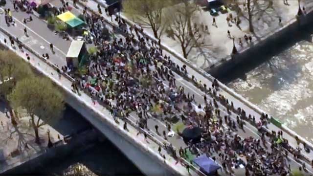 Tusentals klimattroende fundamentalister tog på måndagen till gatorna i London där man olagligt iscensatte omfattande blockeringar av gator och broar. Den uttalade avsikten var att ”lamslå” staden i syfte att utpressa politikerna till att förändra miljöpolitiken för att förhindra det utplånande av mänskligheten som aktivisterna tror är nära förestående. Uppemot ett 100-tal av ordningsstörarna har gripits av polisen efter att ha ägnat sig åt omfattande vandalisering.
