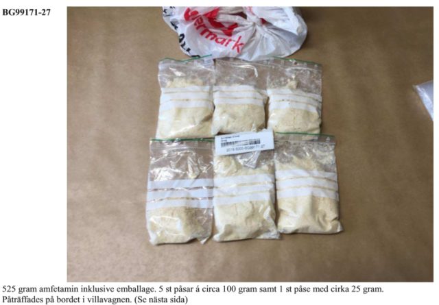 I beslaget fick polisen med sig mer än ett halvt kilo amfetamin och flera olika typer av tabletter.