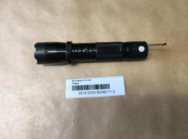 Männen hade även två stycken elchocksvapen med utseende av en ficklampa i sin arsenal.