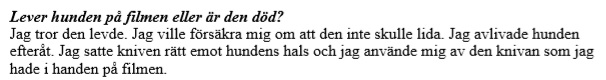 Veterinär bedömde klippet På begäran av polisen har en veterinär analyserat filmklippet för att ge sin syn på lidandet. Nedan ett utdrag ur utlåtandet.