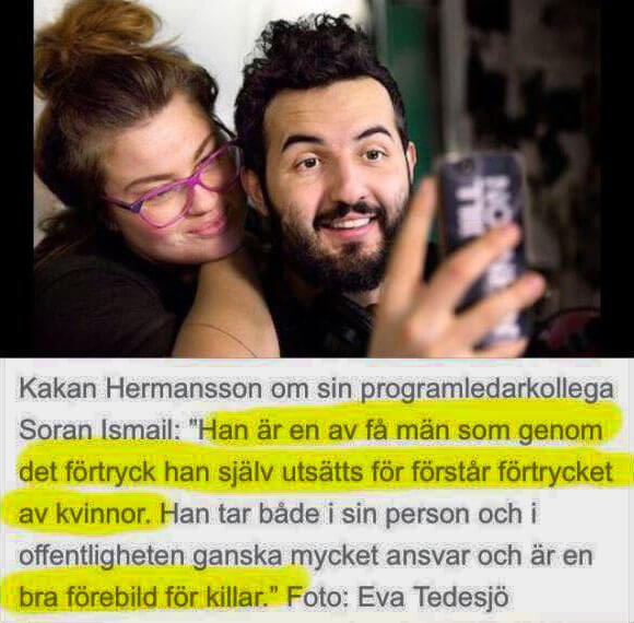 Som en ”bra förebild för killar” porträtterades Soran Ismail i en artikel i Dagens Nyheter för en tid sedan.