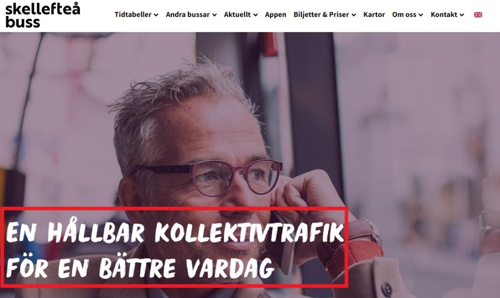 Skellefteå buss marknadsför sig på internet som ”en hållbar kollektivtrafik för en bättre vardag”.