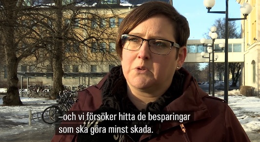 Kommunstyrelsens ordförande Madeleine Jakobsson (C) medverkade i statstelevisionen där hon slog fast att åtgärderna kommer att märkas för invånarna. Däremot framgår det inte i statsmedierna vad som har orsakat den ekonomiska krisen.