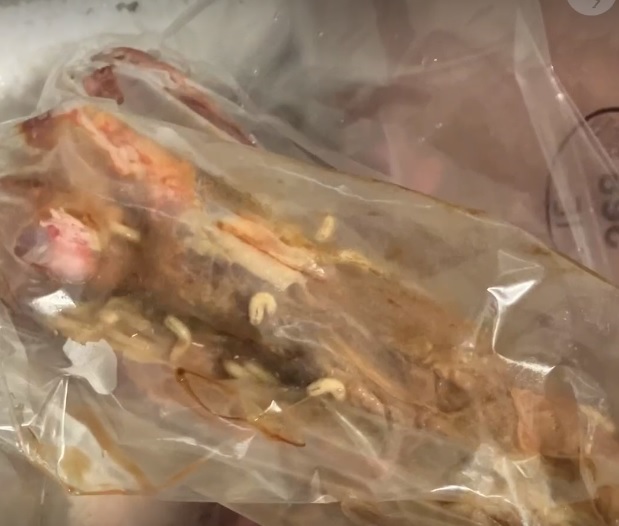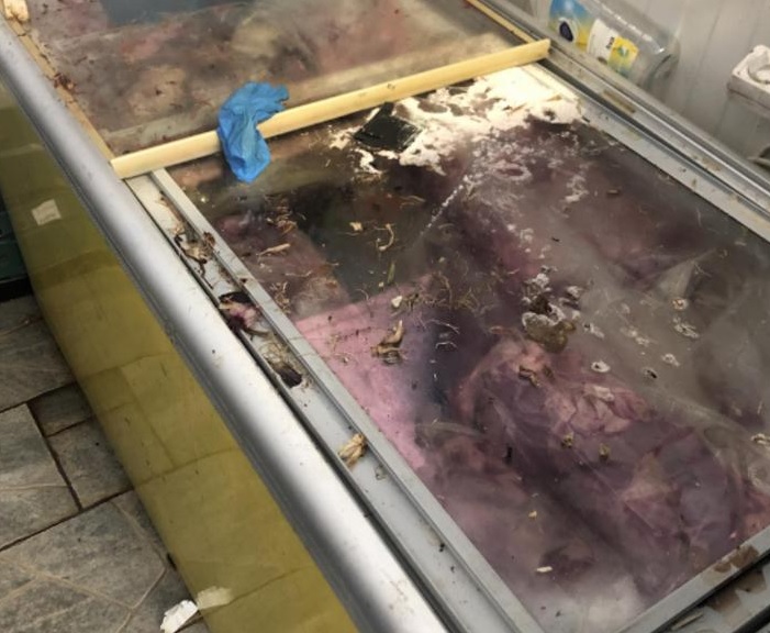 I butiken fanns även stora mängder fruset kött som dock var mer halvtinat med maskar som kröp omkring på.