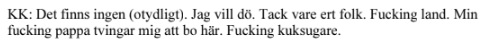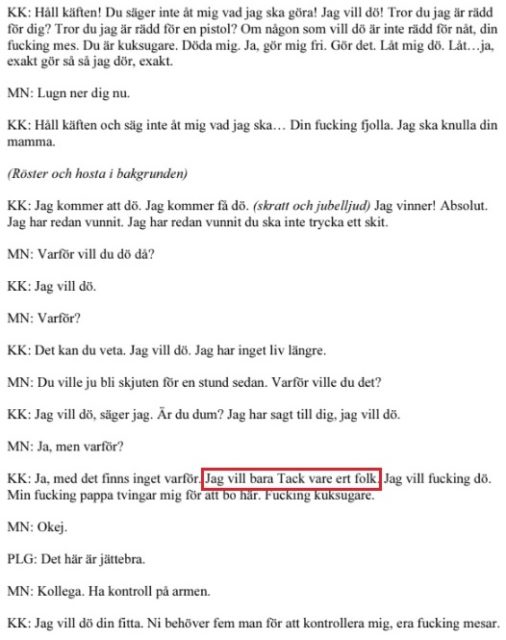 Kourosh uppger att han har utfört mordförsöket ”tack vare ert folk” och att han hatar Sverige.