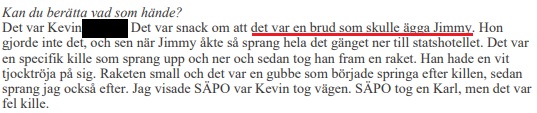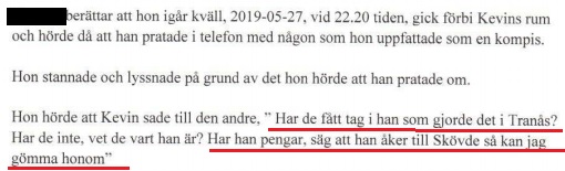 Fler inblandade Sent på kvällen den 27 maj passerar Kevins fostermor hans sovrum och hör hur ett telefonsamtal pågår om händelsen. Kevin erbjuder sig att gömma den gärningsman som utförde en liknande raketattack mot Åkesson i Tranås dagen därpå.