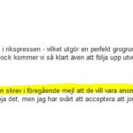 Journalisten bakom granskningen, Roland Klinga, ställer insinuanta frågor till Liselotte Dalén som ”Vilket ansvar har ni för att debatten upplevs som hatisk och hotfull?” Hennes svar kortas ned av redaktionen – medan Lottie Fallman tillägnas en egen artikel där hennes utsaga okritiskt vidarebefordras till läsarna med redaktionen som avsändare.