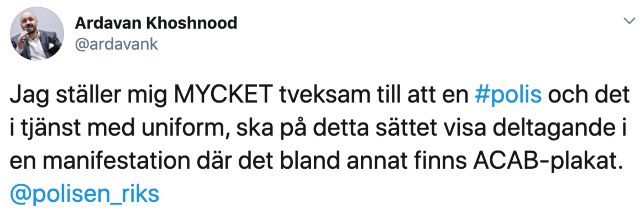 Nu sprids bilder på den svenska polisens agerande. En kvinnlig polis ses knäböjande med en skylt där det står ”vit tystnad är våld” och gråtande kramar demonstranterna.