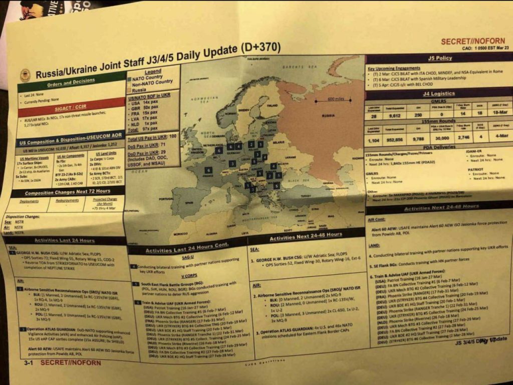 Läckta säkerhetsklassade dokument har spridits på sociala medier som avslöjar USA:s och Natos planer på en militär offensiv mot ryska trupper.