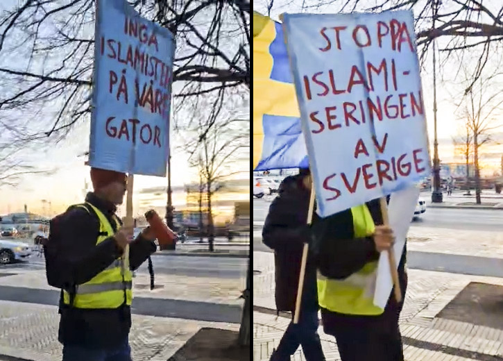 I samband med allt detta anordnar en liten grupp människor i Helsingborg en islamism-fientlig demonstration. ”Inga islamister på våra gator” och ”Stoppa islamiseringen av Sverige” står det på deras skyltar. En av dem som deltar i tåget är slöjdläraren Bent Andersen.