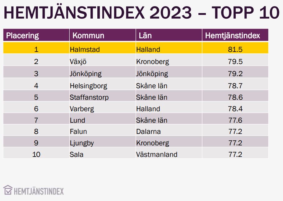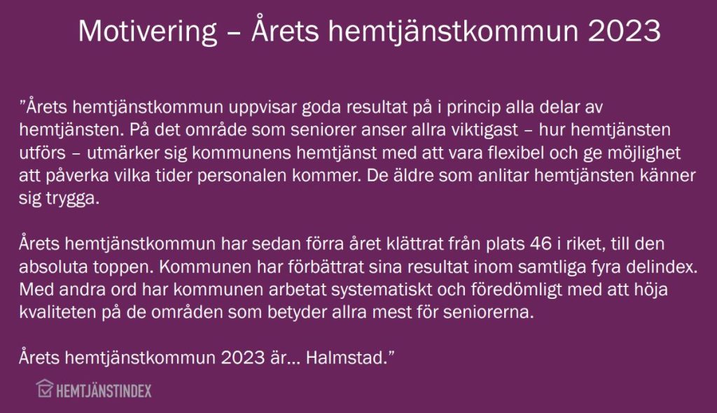 Utmärkelsen Årets hemtjänstkommun 2023 ger SPF Seniorerna till Halmstad.