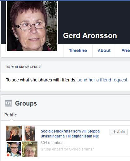 Därefter avbryter Aronsson samtalet och svarar inte längre varken på telefon eller på sms. Vid en genomgång av hennes profil på Facebook visar det sig att Aronsson också är med i gruppen Socialdemokrater som vill stoppa utvisningarna till Afghanistan nu – precis som Lottie Fallman och hennes syster och efterträdare Åsa Dahlin: