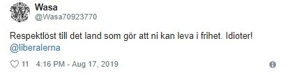 Många rasar mot LUF I sociala medier är det många som rasar mot ungdomsförbundet. En person skriver, ”respektlöst till det land som gör att ni kan leva i frihet. Idioter!”
