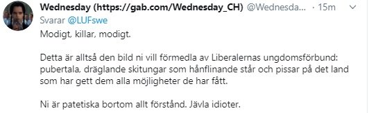 Krisande Liberalernas ungdomsförbund LUF har på sitt officiella twitterkonto publicerat ett inlägg där man med ett stort leende på läpparna bränner upp den svenska flaggan.