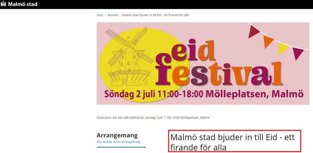 ”Malmö stad bjuder in till Eid – ett firande för alla”, står det att läsa på hemsidan.
