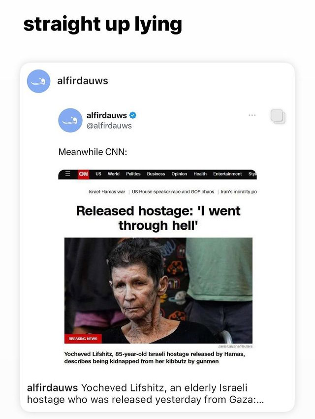 Det Fridays for future-knutna kontot anklagar en av de kvinnor som under terrordådet togs som gisslan av terrororganisationen för att ljuga om sina upplevelser.