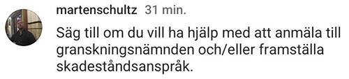 Libertarianen och juridikprofessorn Mårten Schultz erbjuder Nadim Ghazale juridisk hjälp för att kräva skadestånd. Tidigare Näthatsgranskaren Tomas Åberg uppmanar fortköraren att stämma både Samnytt och Borås tidning (BT) för de avslöjande artiklarna. ”Fy fan vad illa”, skriver han.