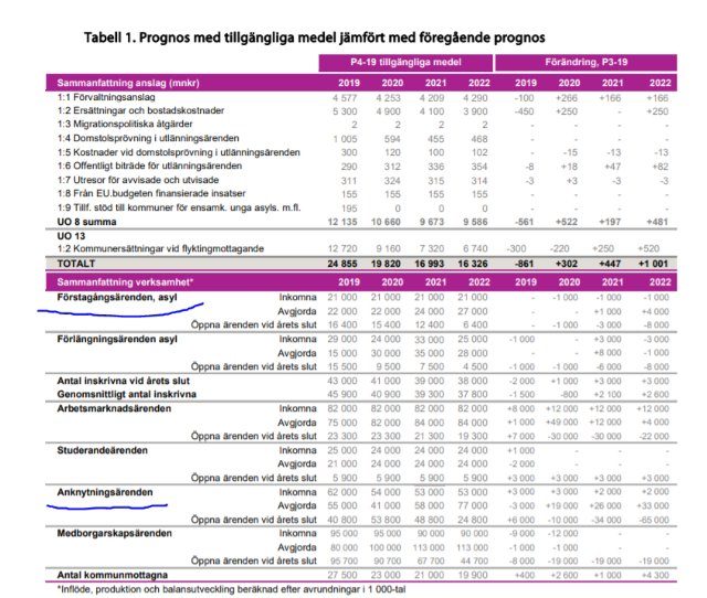 306 000 asyl och anhöriginvandrare väntas Antalet ”förstagångsärenden”, alltså nya asylansökningar, tillsammans med ”anknytningsärenden”, alltså anhöriginvandring, uppgår under prognosperioden 2019-2022 till hela 306 000.