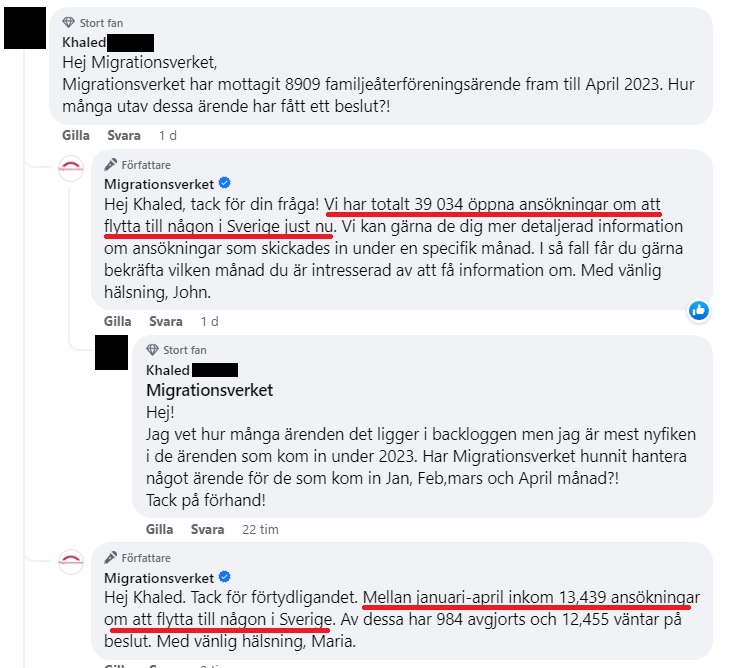 Men många har redan hört om hur generöst Sverige är genom sina bekanta som befinner sig i landet och på den vägen är det även möjligt att invandra. På Facebook har ”Khaled” frågat Migrationsverket om antalet familjeåterföreningsärenden fram till april i år.