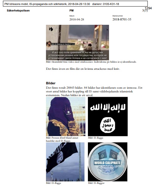 Terrorutredningen Under utredningen har Säpo påträffat en stor mängd material som kan koppla de åtalade männen till våldsbejakande islamism. Det handlar bland annat om en chattkanal i appen Telegram i Idrissons mobiltelefon. Det är en uzbekisk chatt som delar information och bilder över hur man kan tillverka bomber och ta livet av människor.