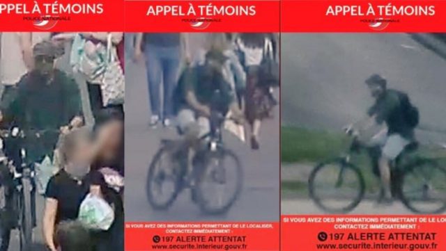 Terroristens cykeltur till brottsplatsen fångades på övervakningskamera och polisen gick ut med en efterlysning som på måndagen ledde till ett gripande.