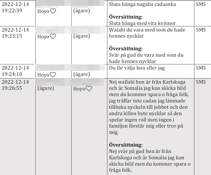 Det är i december 2022 som Mohamedamin Abdirisek Ibrahim, till vardags kallad Amin Abdirisek, får ett SMS från sin mamma. SMS:et är skrivet på en blandning mellan svenska och somaliska, och uppmanar den 20-årige sonen att sluta umgås med ”vita kvinnor” – ”nagaha cadaanka” på somaliska.