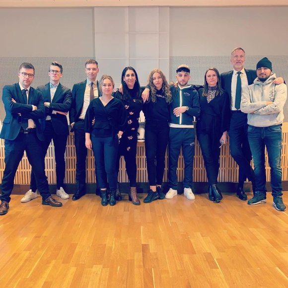 Det visade sig även att advokatbyrån Block i Stockholm använde sin personal som statister i videon. Advokatbyrån publicerade bland annat en bild på Instagram där både personal och rapartisten syntes.