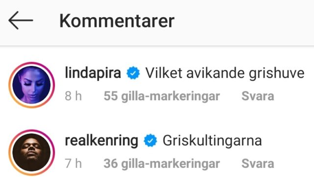 I kommentarsfältet till Dixons inlägg där han uppviglar till hat mot polisen har flera personer anslutit sig. Bland dem återfinns den av SVT och Sveriges Radio prisade rapartisten Linda Pira som kallar polismannen för ”avikande grishuve”. En annan profilerad rapartist, Ken Ring, använder uttrycket ”griskultingarna”. Ring uppmärksammades år 2003 för våldtäktshot mot prinsessan Madeleine.