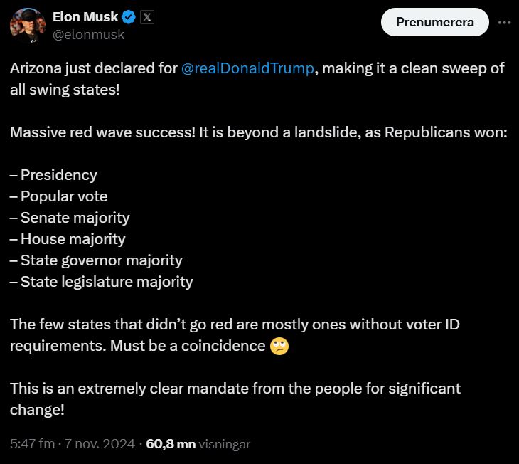Musk: Trumps intervju med Joe Rogan avgjorde valet