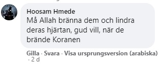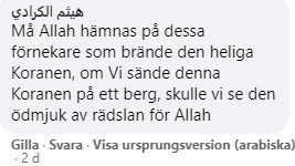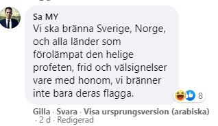 När en arabisk nyhetssida uppmärksammade videoklippet var det många fler som engagerade sig i debatten. Nedan följer ett axplock av kommentarer där några menar att det inte räcker med att bränna flaggor utan vill se hela länder nedbrända, däribland Sverige.