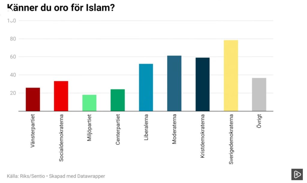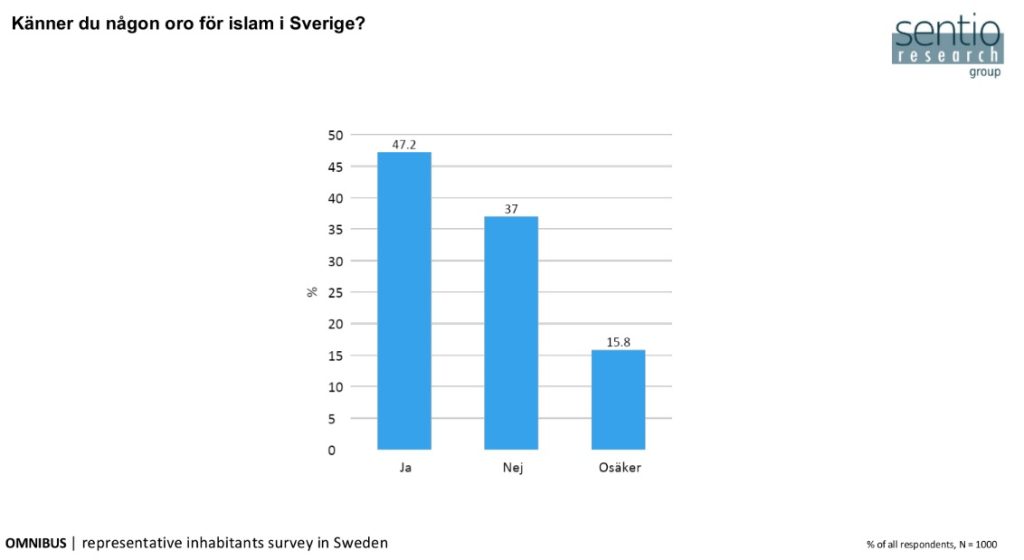 Nästan hälften av de tillfrågade i undersökningen har svarat att känner oro för islam i Sverige.