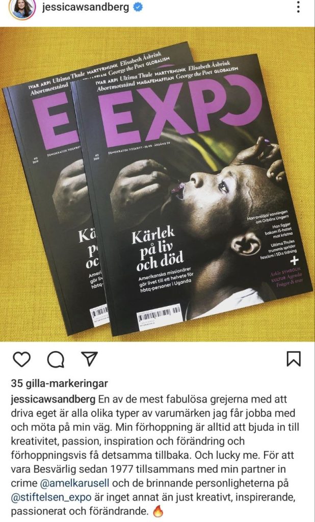 På sitt Instagramkonto skryter Sandberg över hur hon tidigare arbetat med den vänsterextrema organisationen Expo: