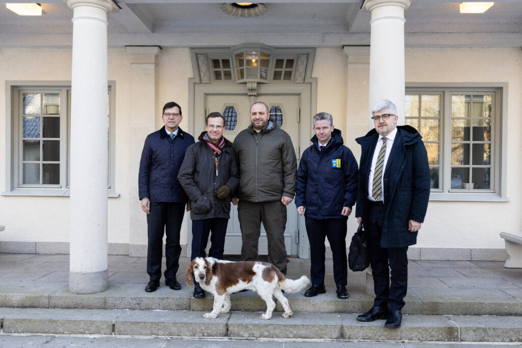 Ulf Kristersson tog emot ukrainske försvarsministern på Harpsund. Pål Jonson, nationell säkerhetsrådgivare Henrik Landerholm och Andrii Plakhotniuk, Ukrainas ambassadör i Sverige deltog också. Foto: Ninni Andersson / Regeringskansliet