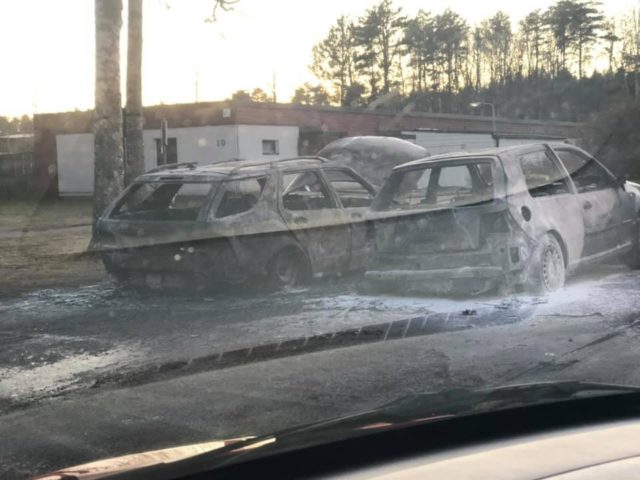 Brända bilar i Sätra. Foto: Faksimil Facebook