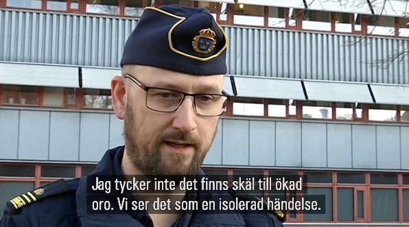 – Jag tycker inte finns skäl till någon ökad oro. Vi ser det som en isolerad händelse, säger Löfstrand till SVT.