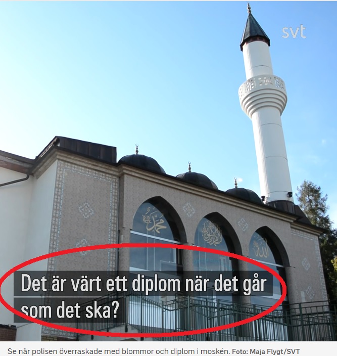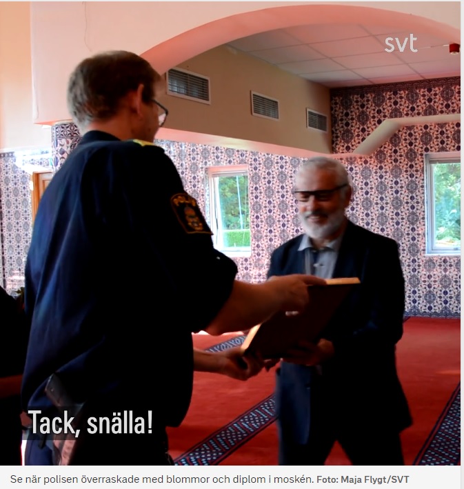 Nyligen delade Polismyndigheten ut ett diplom till en moskéledare i södra Storstockholm. Detta eftersom att moskén såg till att muslimer inte skapade kravaller och kaos i samband med ett islamkritiskt möte.