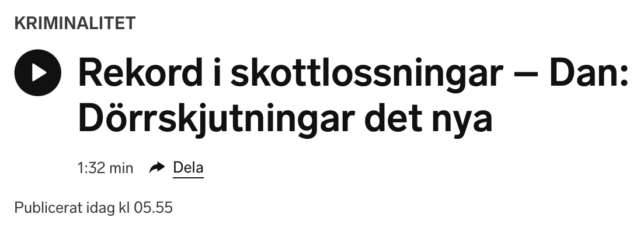 Den här veckan är det Dan Windt, biträdande enhetschef vid utredningsenheten i polisregion Väst, som har medverkat i statsradion och berättat för svenska folket att skottlossningar i trapphus och villaområden är den nya metoden bland gängkriminella.