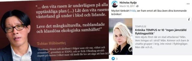 En av Tempus kolumnister är Frida Johansson Metso från Expo som bland annat har skrivit en krönika som propagerar för ”familjeåterförening”. Tidningen ordförande Rydje hyllade detta inslag på sin Facebook sida: