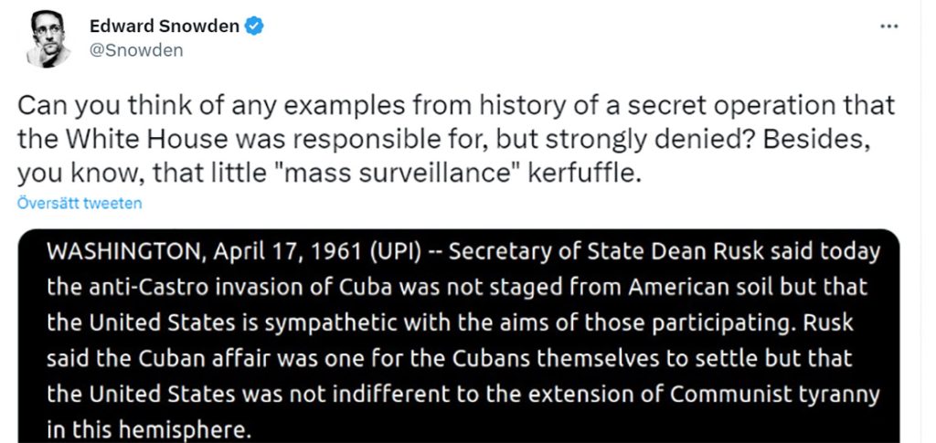 Även den amerikanske visselblåsaren och före detta CIA- och NSA-medarbetaren Edward Snowden har sarkastiskt kommenterat Seymour Hersh artikel med att det inte vore första gången USA:s regering förnekar inblandning i ”hemliga operationer”.