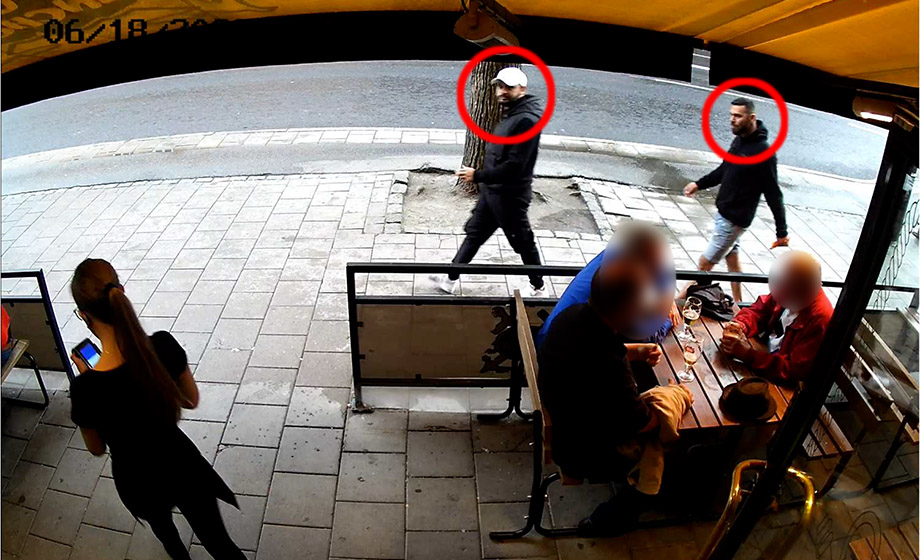 Vad den framgångsrike företagaren inte noterar är emellertid att två män fått upp ögonen för honom, och hans dyra klocka. En övervakningskamera fångar dem på bild när de går förbi den restaurang där han sitter på uteserveringen tillsammans med två andra män.