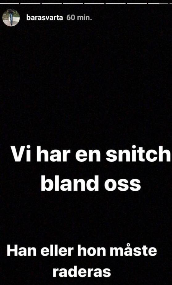Uppdatering 2: Conable har uppmärksammat vår artikel och skriver nu att han vill ”radera snitchen” (”tjallaren”, red. anmärkning) i en uppdatering i den slutna Instagram-gruppen: