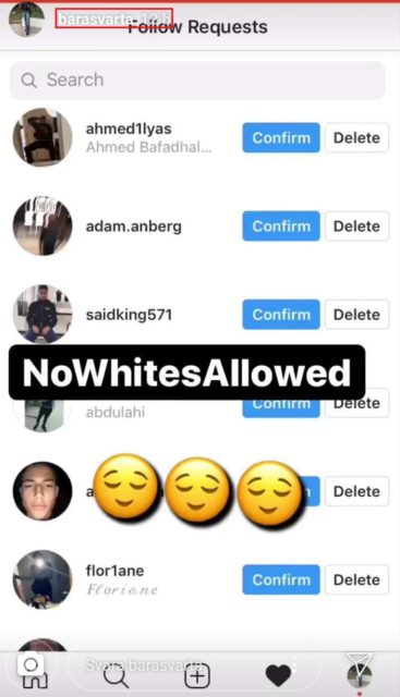 Samhällsnytt har tagit del av kontot där det tydligt framgår att endast svarta ska få tillträde till innehållet. Nedan följer en bilduppdatering från hans konto där han klargör att han inte tillåter några vita personer att gå med i gruppen.