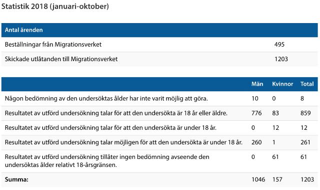I år har Rättsmedicinalverket (RMV) gjort över 1 200 åldersbedömningar åt Migrationsverket. Nu har myndigheten sammanställt utgången av dessa.