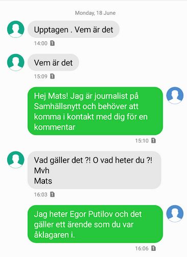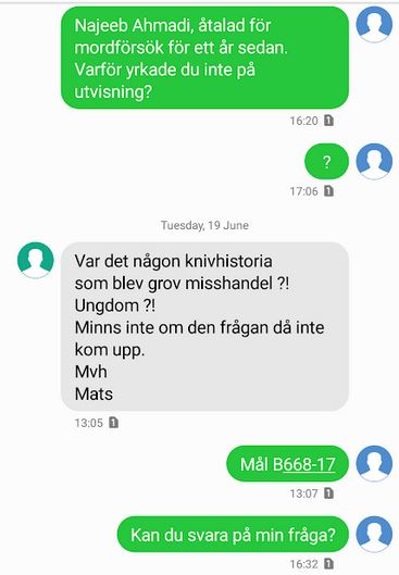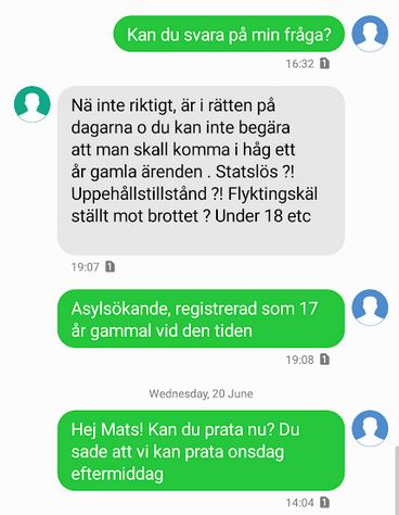 Sedan i måndags förra veckan har vi sökt Mats Wihlborg för att få en kommentar från honom om varför han aldrig åberopat utlåtandet om åldern eller yrkat på utvisning av mannen. Efter flera telefonsamtal som han inte svarar på kommer ett sms från Wihlborg:
