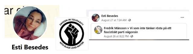 Ytterligare en uppseendeväckande omständighet finner vi när vi upptäcker att en av nämndemännen som fällde den åtalade är socialdemokraten Estika Besede. På Facebook använder hon en ”svart makt”-symbol och kallar Sverigedemokraterna för ett ”fascistiskt parti”.