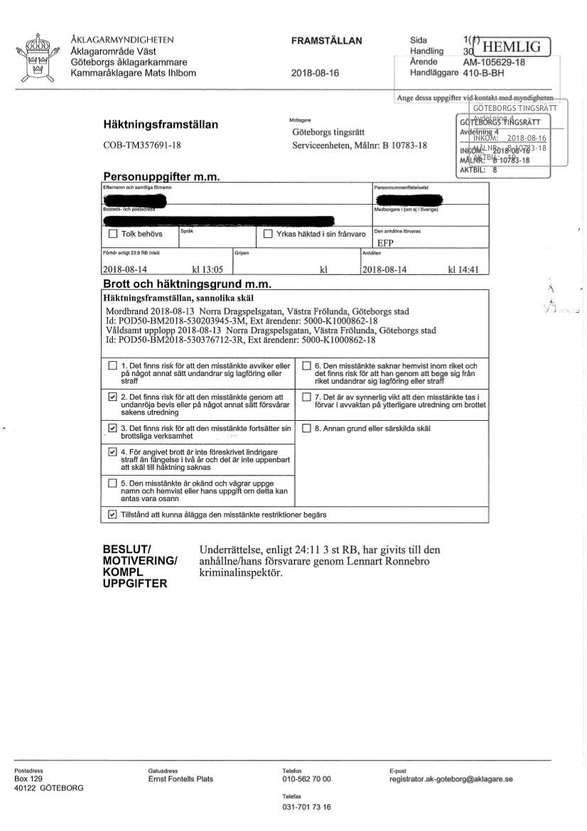 Den version av häktningsframställan som domstolen lämnar ut ser ut sä här (klicka för större bild):